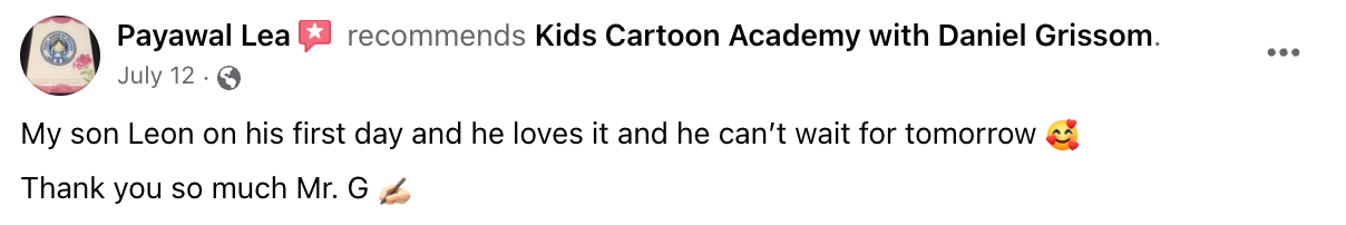 I created Kids Cartoon Academy to ensure that other children don't abandon their inner, creative child as they grow up, like I once did.