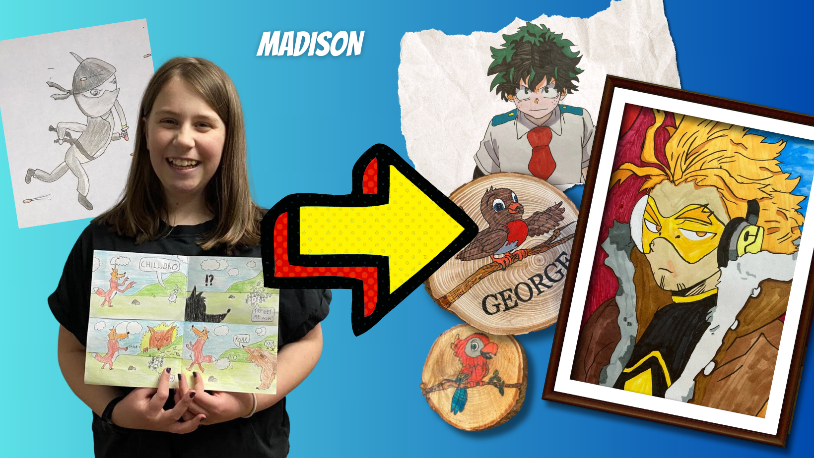 We use research-backed methods honed by years of personal experience in classrooms. Students not only gain art skills from light and shadow to perspective and storytelling, but also a growth mindset and creative problem solving. We primarily focus on three principles in crafting our lessons and community: Engagement, Targeted Skill Instruction, and Belonging.