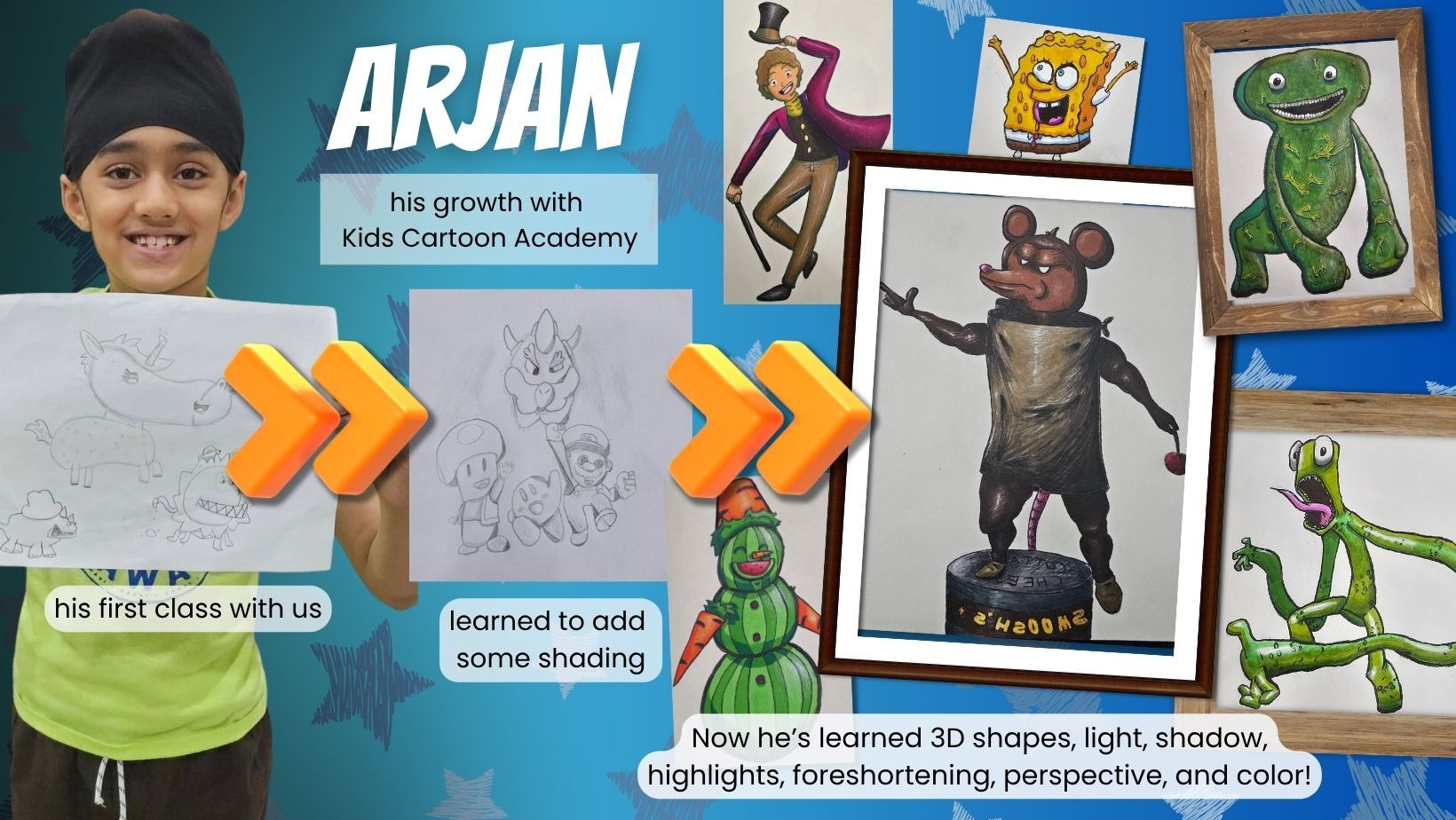 Dew was in a tough spot. He dreaded going to school every day. His confidence was at an all-time low. His mom enrolled him in Kids Cartoon Academy as a last resort — and it became the highlight of his week. The only thing he looked forward to.