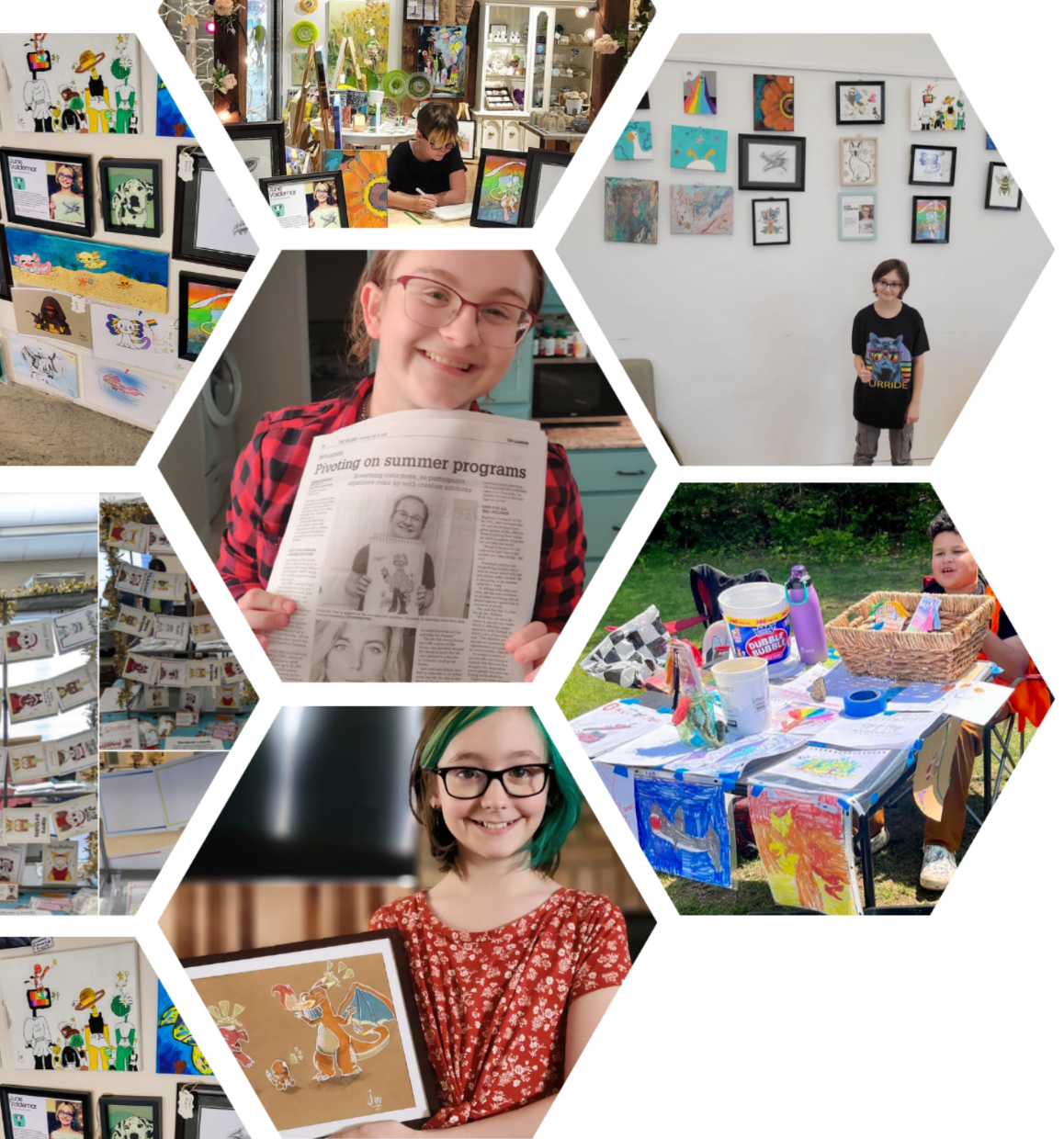 She loved it so much she couldn't wait to come back and was the one reminding her mom that she had our class. Her art skills improved beyond anything her mom imagined. Zara learned to take risks and accept that not everything works perfectly the first time. She gained the confidence to lead an after-school art club, had her art featured in her local paper, and sold her work at a craft fair.