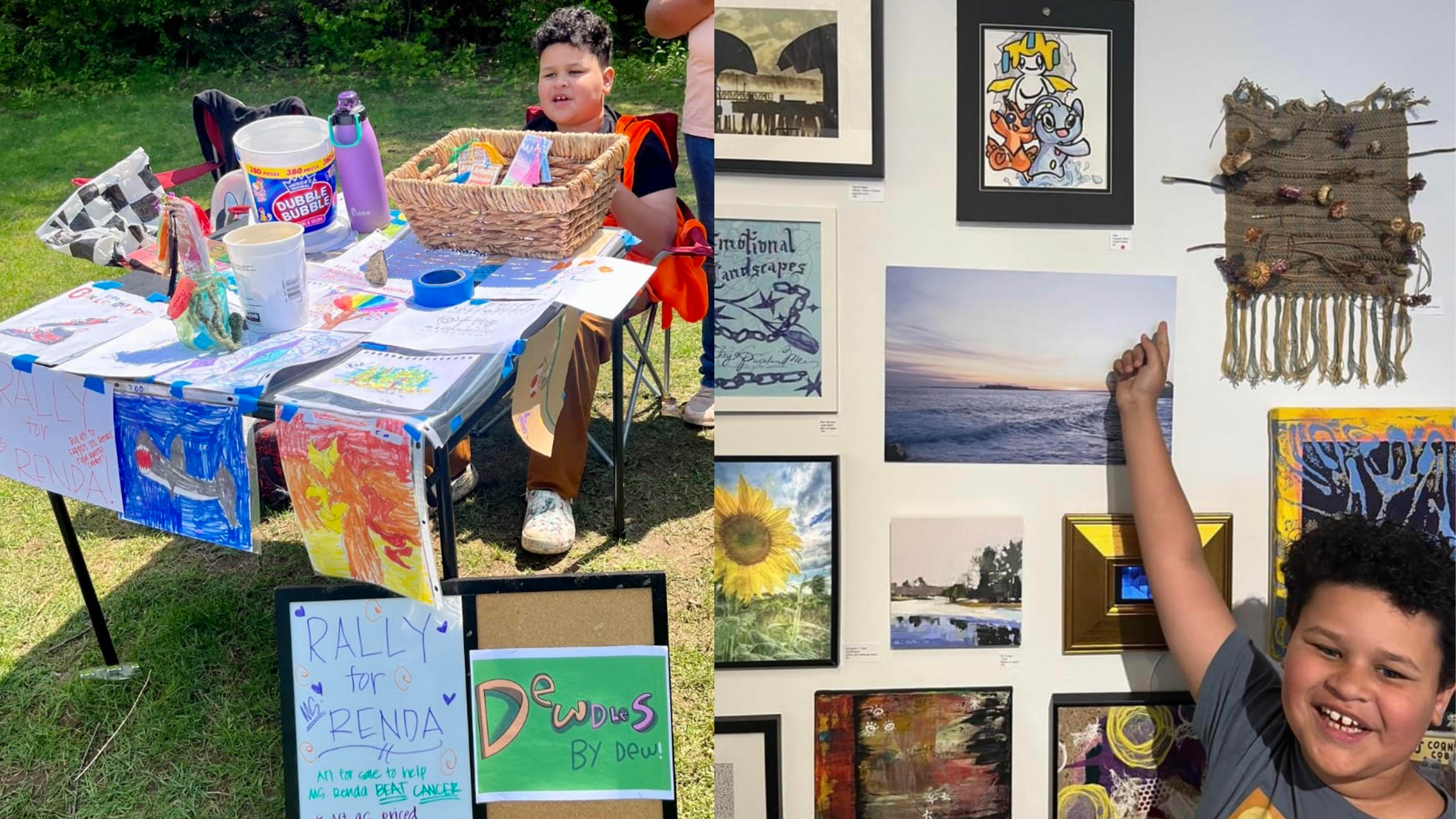 As his skills grew, everything else started to shift. He used his drawings to make friends at a new school. He started a drawing club at lunch and taught what he was learning to other students. He launched his own sticker line, “Dewdles by Dew.” He sold his art in a gallery. And when his art teacher was diagnosed with cancer, Dew organized a fundraiser with his friends — raising over $450 by selling their art.