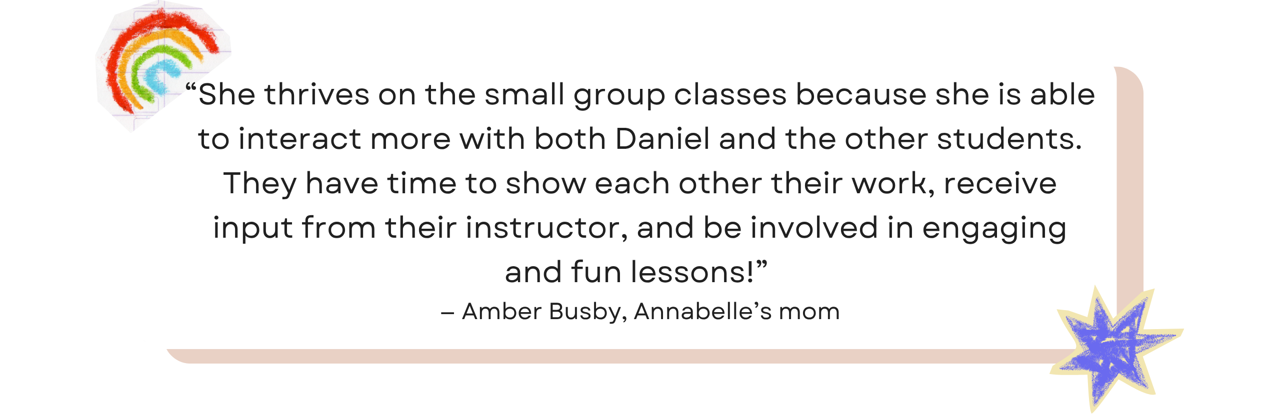 “Each class not only enhances her skills but also significantly boosts her confidence and enjoyment of art.”